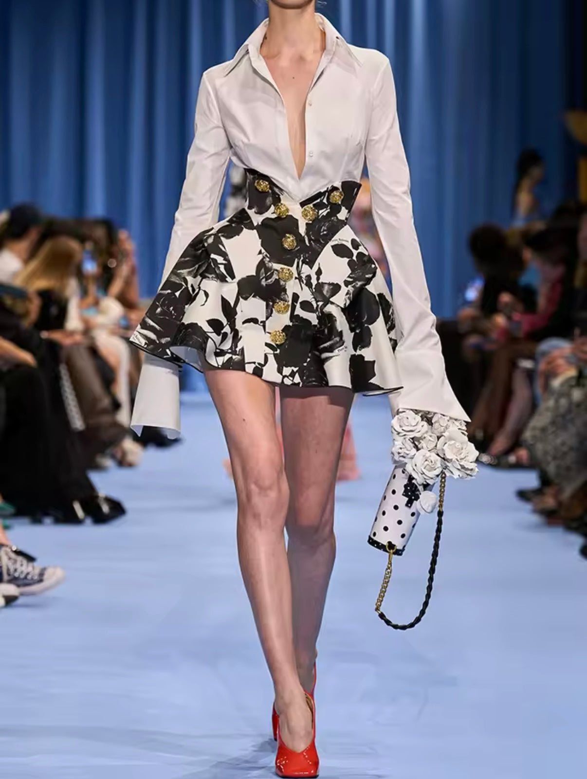 Melissa-Long Sleeve Printing Mini Two-Piece Set