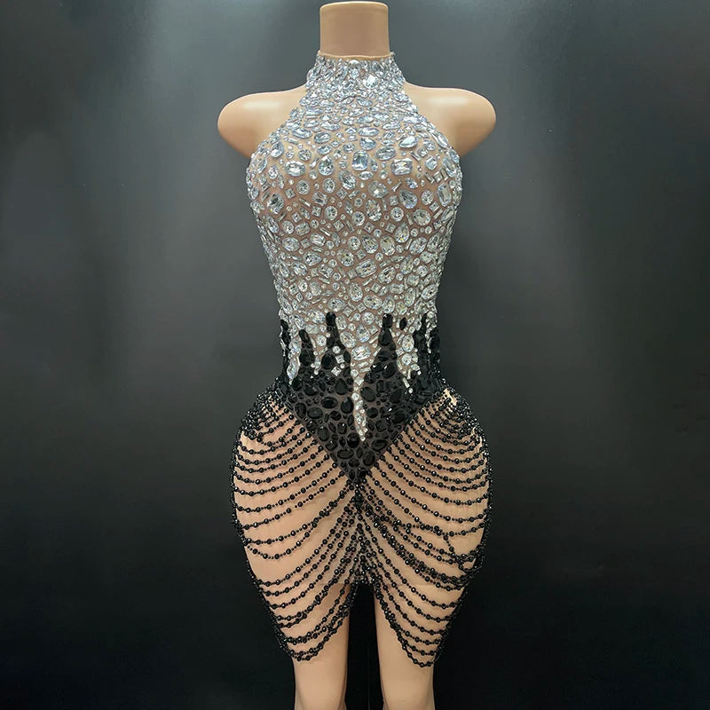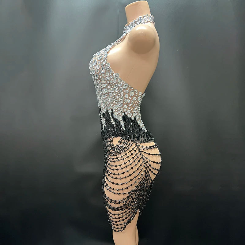 Embellished Illusion Mini Dress