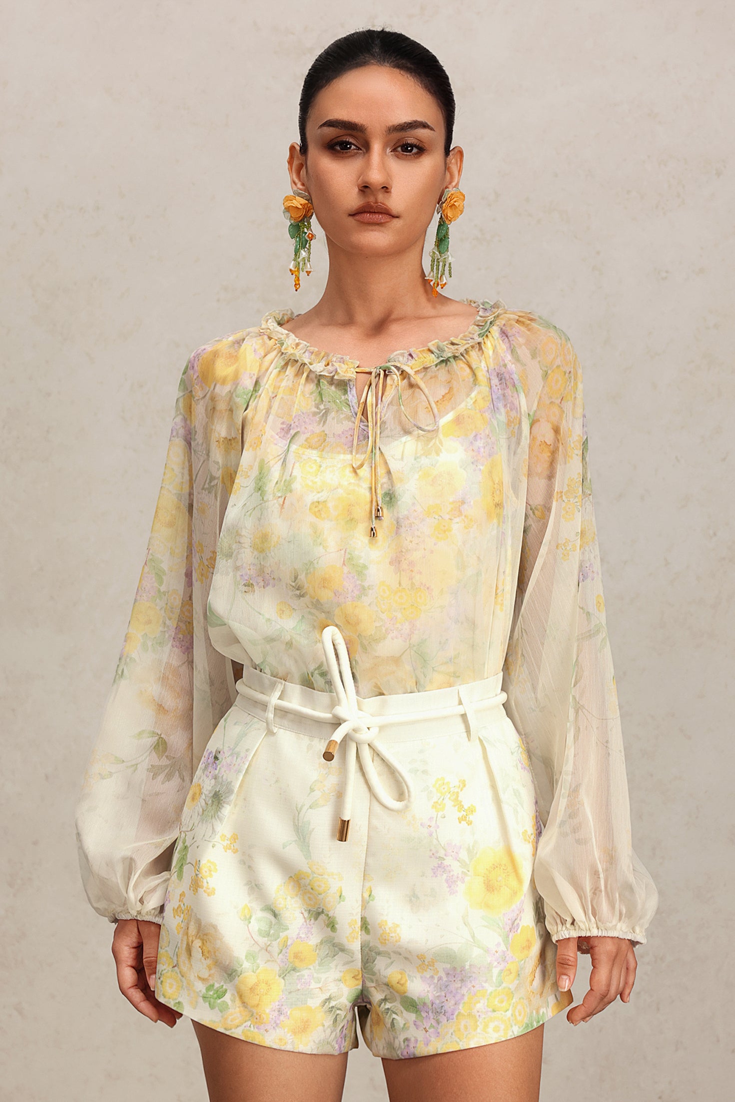 Chic meets sophistication in this impeccably tailored co-ord set, where elevated simplicity defines the mood. Featuring a sheer top and high-waisted shorts, this ensemble is designed to sculpt and flatter with polished precision.
